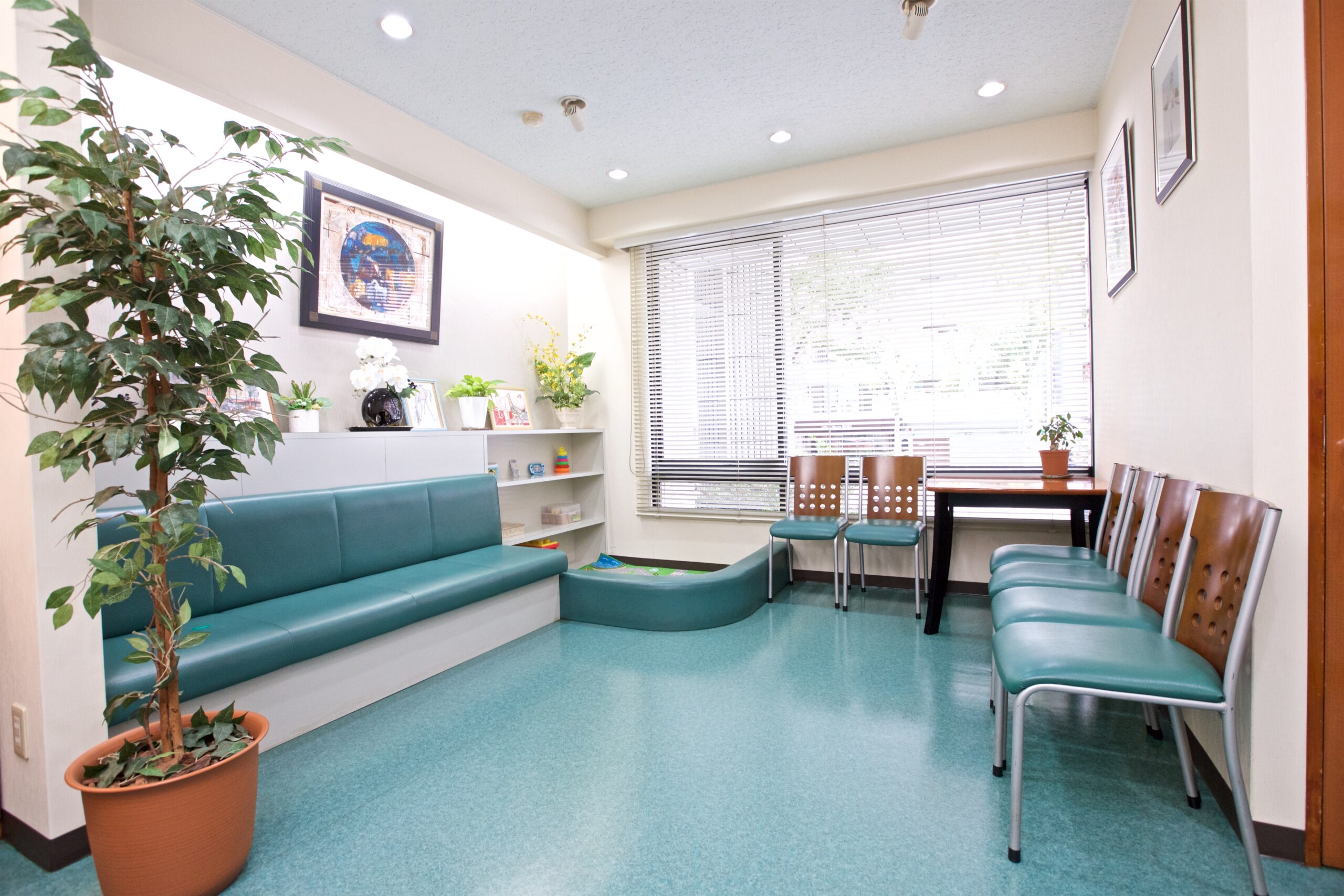 待合室は、ご来院いただいた患者様が落ち着いてお待ちいただけるよう、ゆったりとした空間づくりを意識しております。診療までの時間を快適にお過ごしいただけるよう配慮しています。